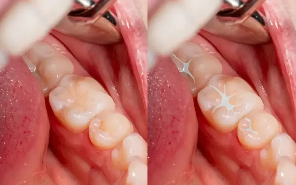 Sigilantul, un material fluid și transparent, este aplicat cu grijă în șanțurile măselei, acolo unde riscul de carii este cel mai mare. Cu ajutorul unei lămpi speciale, acesta se întărește rapid, formând o peliculă rezistentă care acționează ca un scut împotriva bacteriilor. Procedura este complet nedureroasă și durează doar câteva minute pentru fiecare dinte.